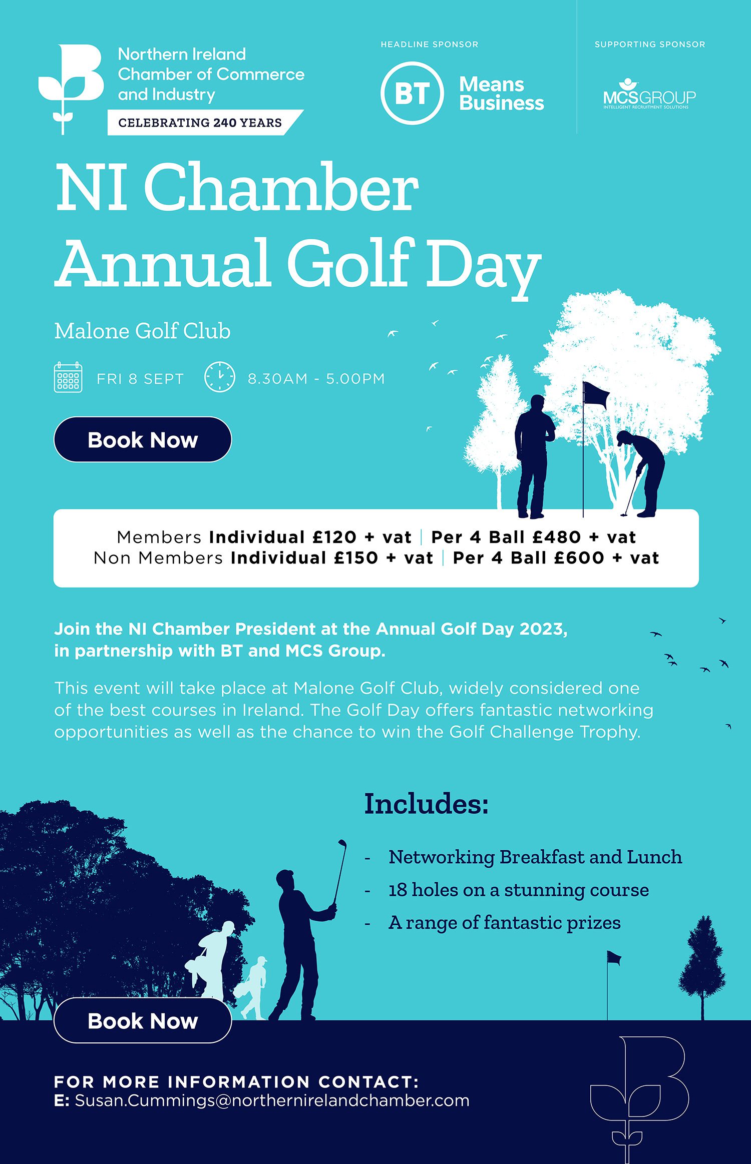To book a 4 ball, click ‘book tickets’ above. To book an individual place, or for more information, please contact Susan.Cummings@northernirelandchamber.com.