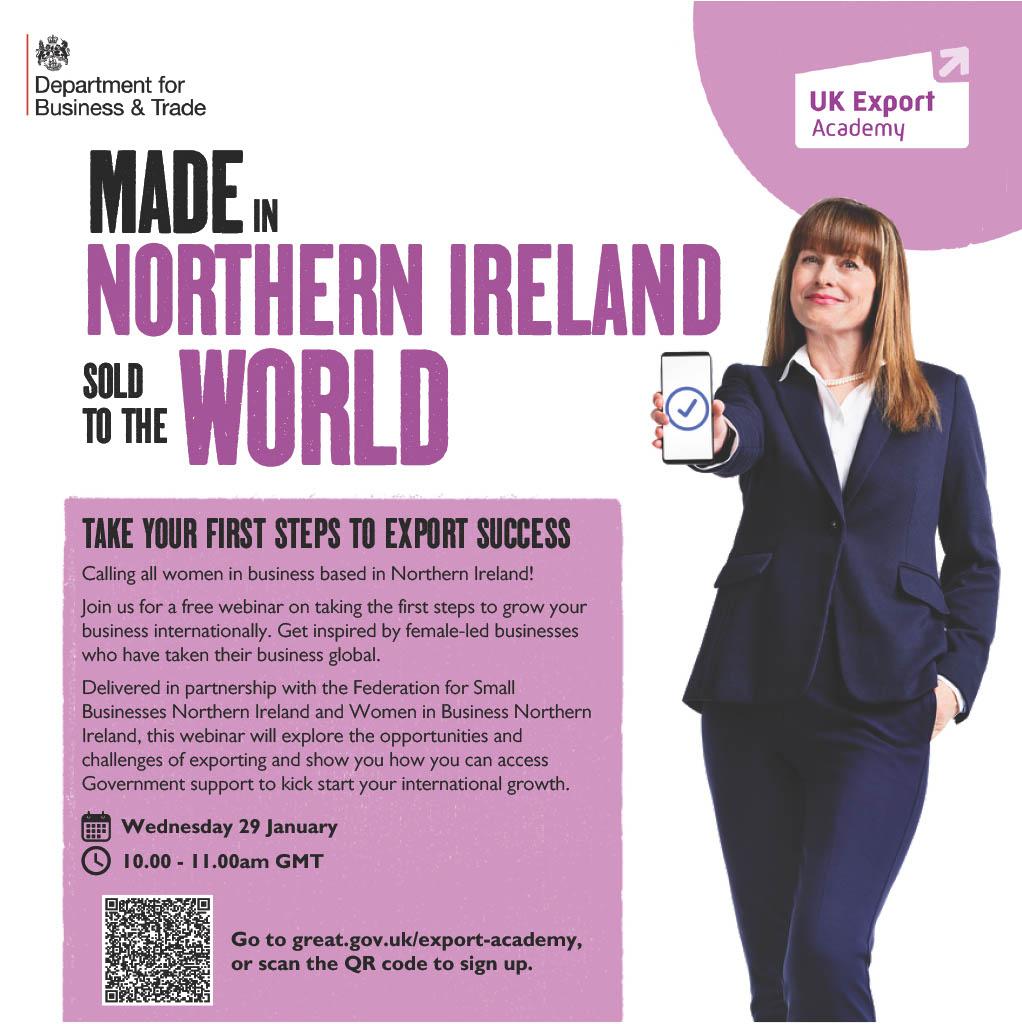 Calling all women in business based in Northern Ireland! Join us for a free webinar on taking the first steps to grow your business internationally.