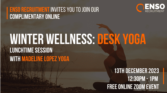 Enso Recruitment invite you to join us on Wednesday 13th December at 12:30 pm for its Winter Wellness session of Desk Yoga🧘♀️