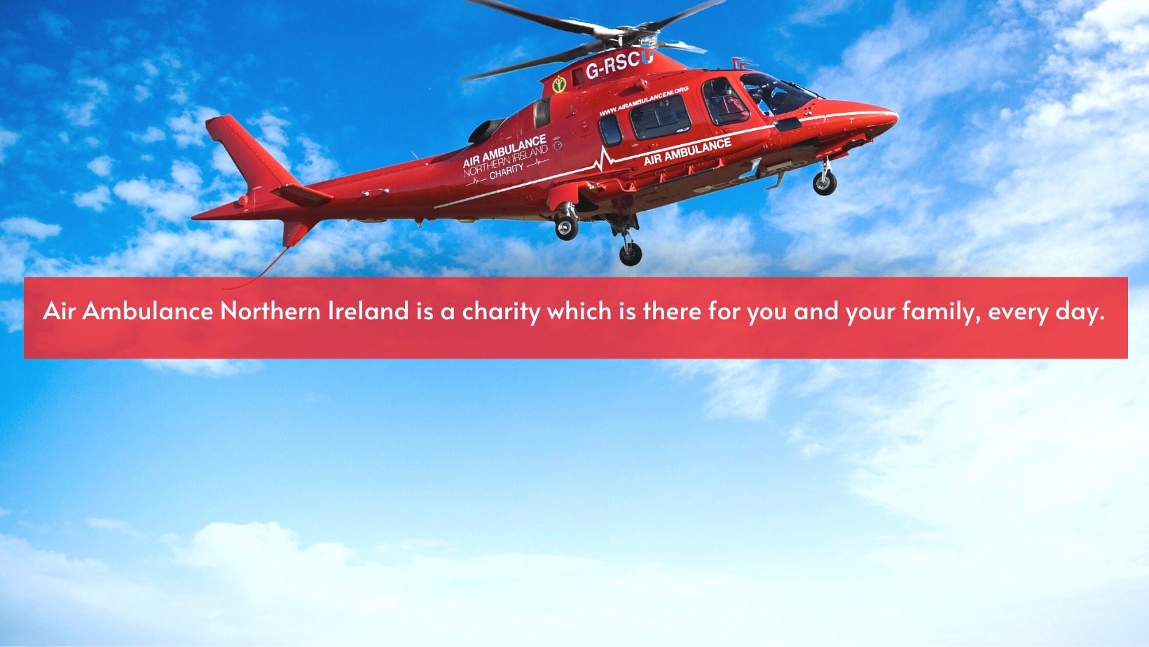 Air Ambulance NI works in partnership with the Northern Ireland Ambulance Service to provide critical pre-hospital emergency care. The service brings consultants and paramedics directly to patients in life-threatening situations within 25 minutes of an emergency call. Operating seven days a week, 12 hours per day.