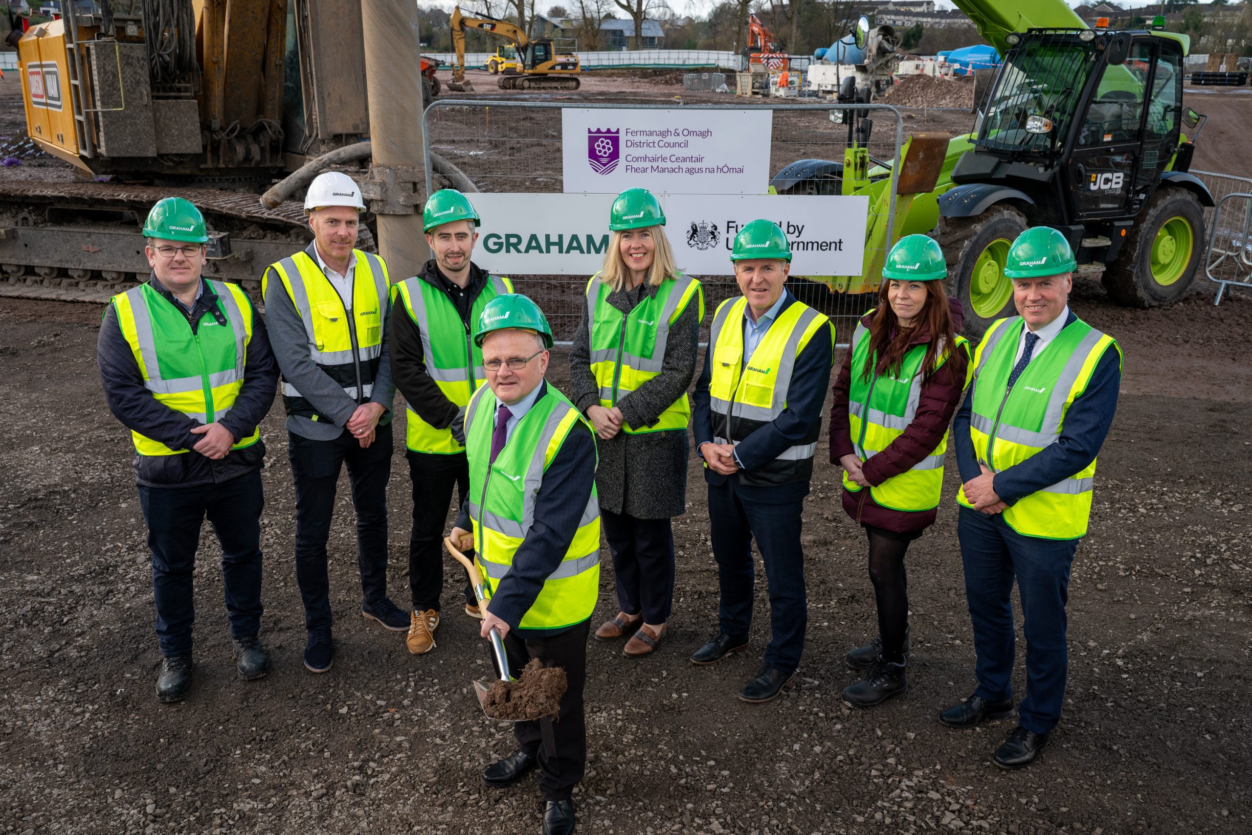 With demolition and site preparations now complete, the Chair of Fermanagh and Omagh District Council, Councillor Barry McElduff, was joined on site by representatives from Ministry of Housing, Communities & Local Government, Council officers and contractor GRAHAM to mark the beginning of construction work on the transformative redevelopment of the Fermanagh Lakeland Forum in Enniskillen.